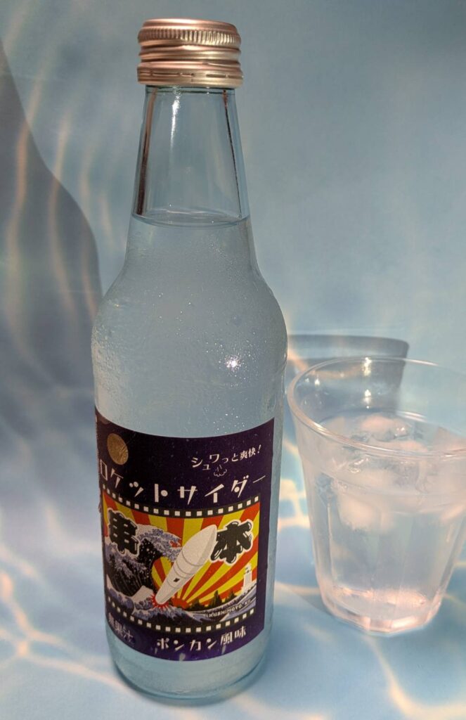 大漁旗のようなちょっとレトロなデザインのラベルが目を引く 串本ロケットサイダー です。